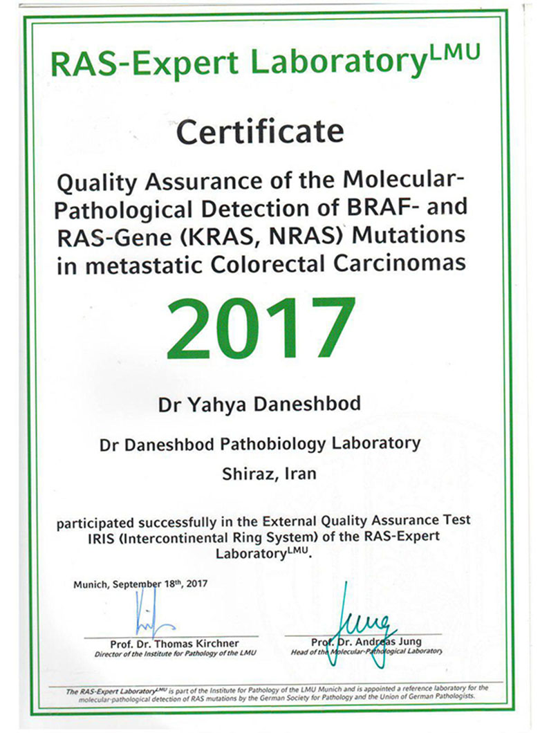 گواهی تضمین کیفیت تست مولکولار RAS در سرطان روده
